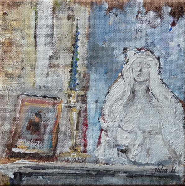 Portrait, bougie et buste